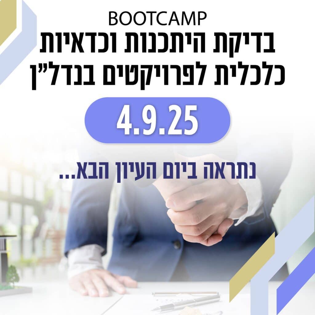השתלמות מקצועית לעוסקים בענפי הבנייה והנדל"ן, בנושא: בדיקת היתכנות וכדאיות כלכלית לפרויקטים בנדל"ן
